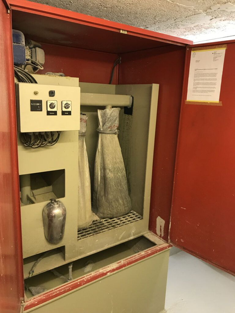 Durch zwei Vorklärbecken, in welchen die schweren Farbpigmente absinken, gelangt das Wasser in einen Behälter, in welchem mit „Spaltpulver“ vermengt die letzten unnatürlichen Inhaltsstoffe gebunden werden. In den Filtersäcken werden dann diese gebundenen Stoffe zurückgehalten und das saubere Wasser wird der normalen Kanalisation zugeführt.